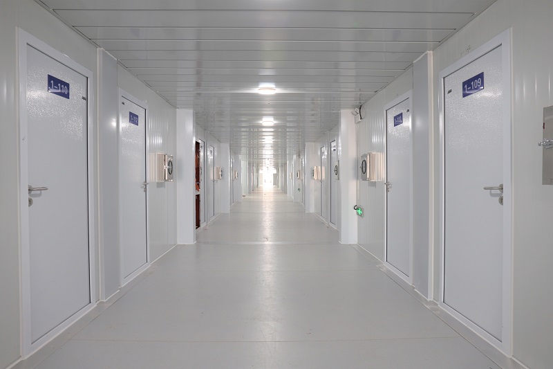 项目概况:乐鱼(中国)官方网站健康驿站(高新)选址位于承德附属医院南院区北侧,总占地面积70亩,规划建设集装箱房1733间(含连廊间),其中,隔离房间 971 间(1003张床位);功能用房269间;其他(廊道、楼梯间)493间。工程布局为四排三组团,地上两层集装箱结构。功能分区有隔离房11栋、办公用房3栋、综合用房1栋。总建筑面积31064㎡,其中隔离用房总建筑面积27586㎡,办公用房2001㎡,综合服务用房1086㎡,其他配套设施(门卫、垃圾暂存间、污水处理、化粪池等设施)300㎡。